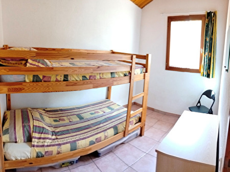 Een slaapkamer met 1 tweepersoonsbed van 160 en een slaapkamer met 1 stapelbed van 90 en 1 opklapbed.