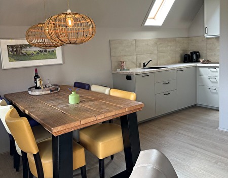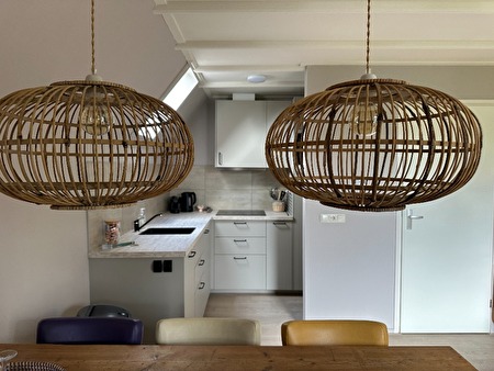 Dit vakantiehuis is voorzien van een gezellig ingerichte ruime woonkamer met een eethoek en een zithoek met TV. Verder een compleet ingerichte nieuwe open keuken met vaatwasser en combimagnetron.