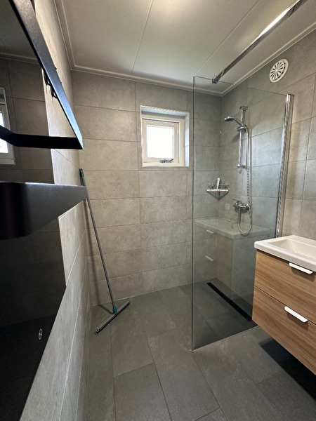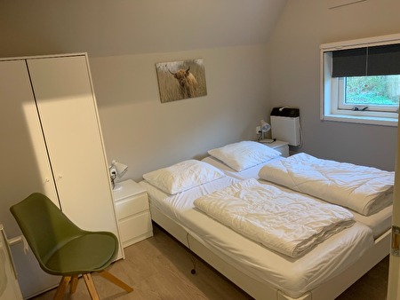 Beneden is er een slaapkamer met een tweepersoonsbed, een nieuw apart toiletruimte en een badkamer.