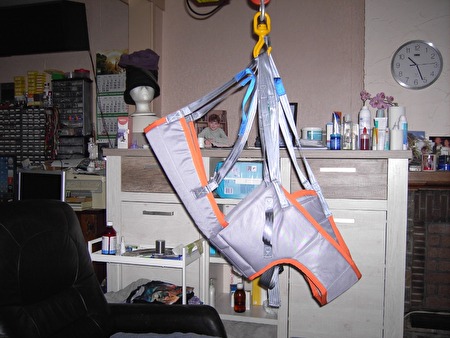 deze liftmat is geschikt voor gebruikers die minder mobiel zijn en laat toe om naar het toilet te gaan. Deze is voorzien van een veiligheidsriem en wordt gebruikt voor een verplaatsing van liggende of zittende houding naar zittende positie ,stof is polyester, is gemakkelijk aan en af te doen, deze is niet geschikt voor zware personen, de gordelomtrek is ongeveer 105cm en mag tot 200kg heffen, deze is aangekocht met CM vermindering voor 201,33 euro en is te koop voor 100 euro + eventueel verzendkosten, kan afgehaald worden in GAVEREprijs : 100 €