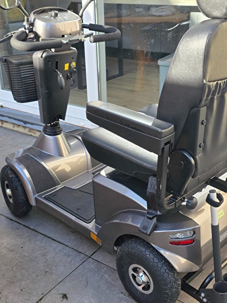 De scootmobiel is nieuw maar de kat heeft wat gekrapt op de zitting.