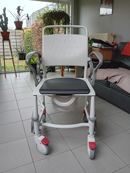 Toiletstoel, niet verstelbaar. Amper gebruikt + 1 pak CareBag
