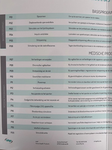 Het is een medisch massagebed om allerhande klachten te verbeteren of te verhelpen met verschillende programma’s zoals aangegeven in het boekje dat erbij hoort.