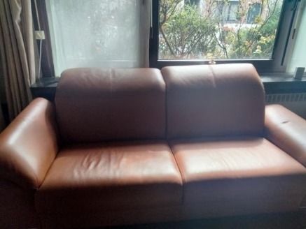 Bruine zetel uit leer. Nog maar 2 jaar oud en amper gebruikt wegens ziekte eigenaar.