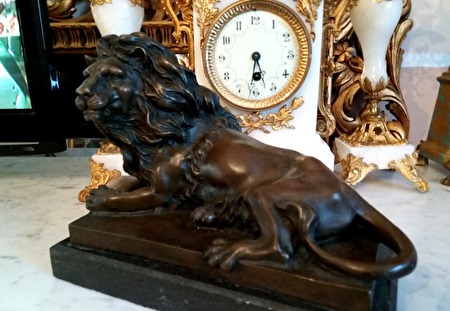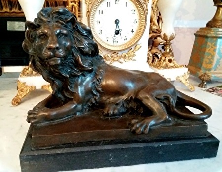 Afmetingen: 21 cm hoog, 14 cm breed, 28 cm lang. Gewicht: 6 kg. Op een marmeren voet, in perfecte staat. 490 euro plus verzendkosten.