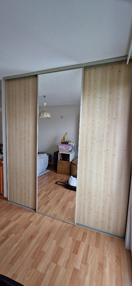 6 schuifdeuren, 4 uitzicht hout en 2 spiegeldeuren.