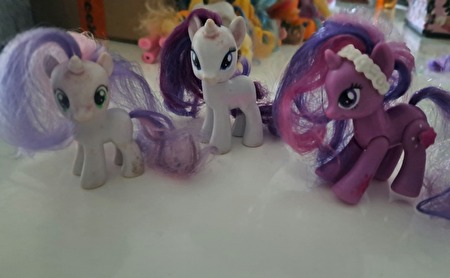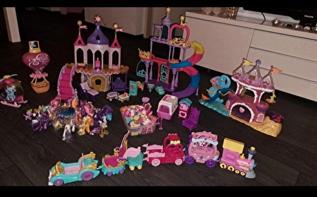 Compleet met accessoires en de grotere met licht en geluid. Ponys zijn goed onderhouden geen knopen in het haar of viezigheid