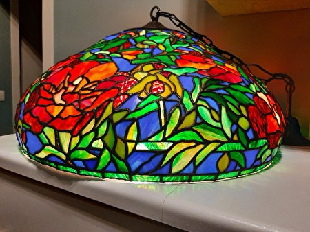 Tiffany hanglamp (pioenen) 67cm doormeter 30cm hoog.