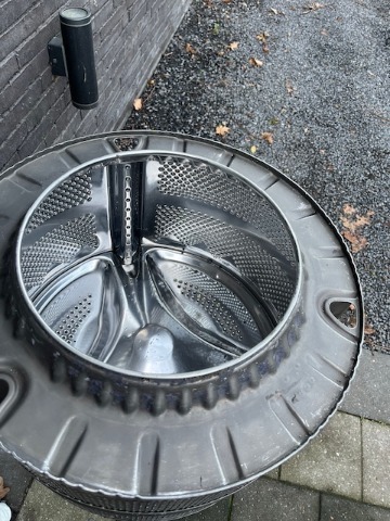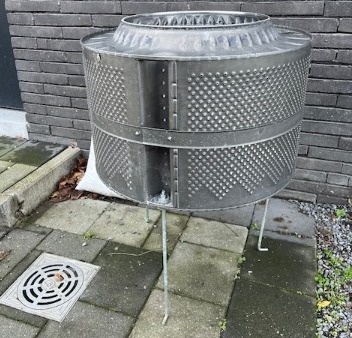 kan ook als BBQ worden gebruikt. Roest niet. Sfeeriek doordat je het vuur door de gaatjes ziet.