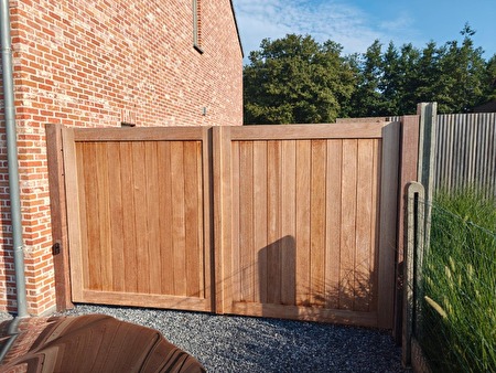 te koop prachtige afzelia poort en poortje nieuw h 1m80 voorzien van alle beslagwerk slaglat en paleninfo direct en prijs op aanvraag ook op 0479408537
