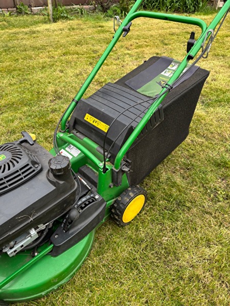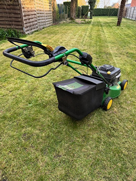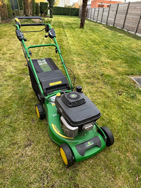 Zeer goed onderhouden Jhon Deer grasmaaier. Variabele versnellingen eenvoudig aan te passen aan je eigen noden. Maaihoogte in te stellen tussen 20 en 80 mm. Opvangzak. Mulchen kan ingesteld worden.prijs : 800 €