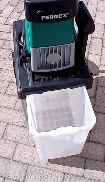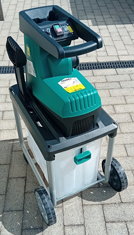 Stille Hakselaar/Shredder 2800W Voor takken tot Ø45mm – Incl. 60L opvangbak & duwstok. Dikte mes te regelen.