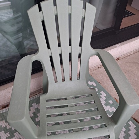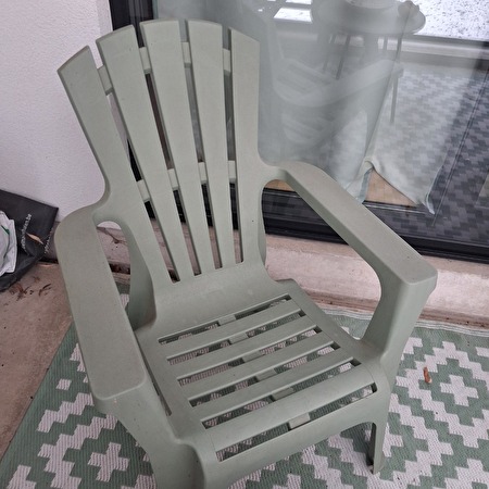 2 GROENE TUINFAUTEUILS TE KOOP. BIJNA NIEUW. INCLUSIEF METALEN TAFELTJE