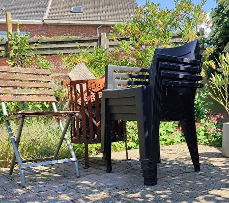 4 plastiek tuinstoelen Melsele Isidoor.maes1@telenet.be , 0495145304