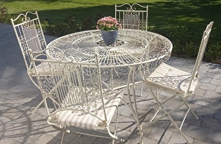 Romantische tuineethoek D120 + 4 opklapbare fauteuils + 4 kussens