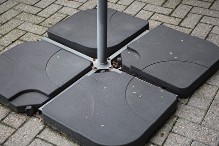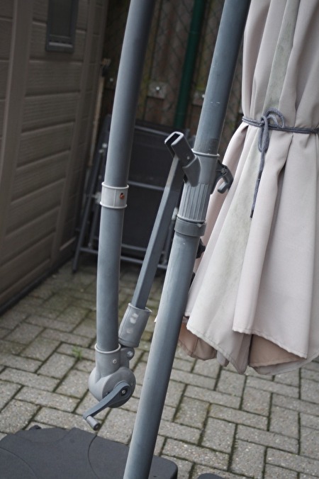 WILRIJK • Aluminium tuinset met 4 stoelen en kantelbare parasol in goede staat. meer...
