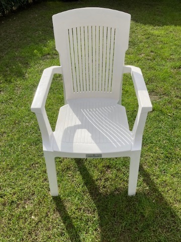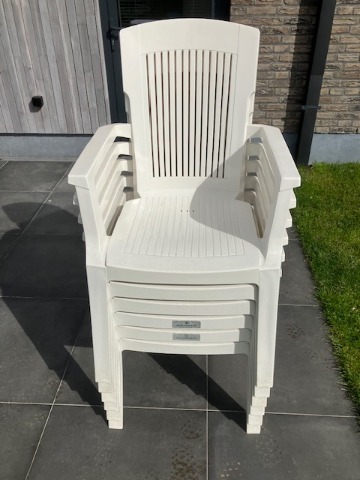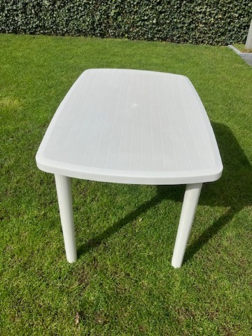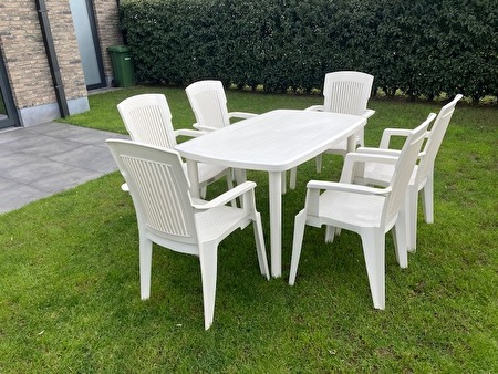 Witte plastic tuintafel met 6 stapelbare stoelen