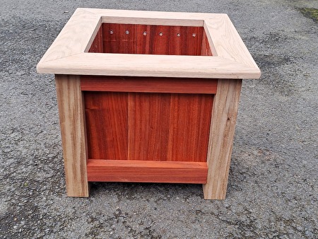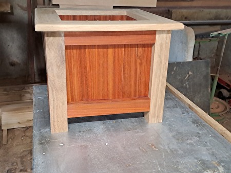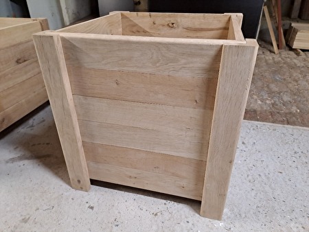 Ik maak bloembakken in eik of padoek, dus enkel in hardhout. Artisanaal en mooie afwerking met afgeronde voeten en bovenste latten. Blokjes in trespa onder de voeten tegen de vocht. Worden gemaakt in de gevraagde afmetingen en diktes. 2 voorbeelden van prijzen LxbxH 410x410x350, dikte latten 18mm. = 95€/stuk of LxbxH 550x550x550,dikte latten 23mm.= 175€/stuk.Indien gewenst wordt GRATIS een worteldoek geplaatst langs binnen en voor een meerprijs kan bak gebeitst/vernist worden en wieltjes gemonteerd.
