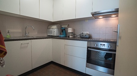 - keuken met inductievuur, afwasmachine, oven, microgolf, frigo, Senseo, koffiezet, waterkoker.