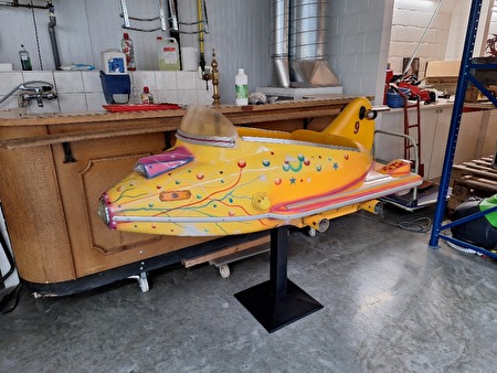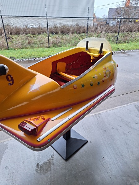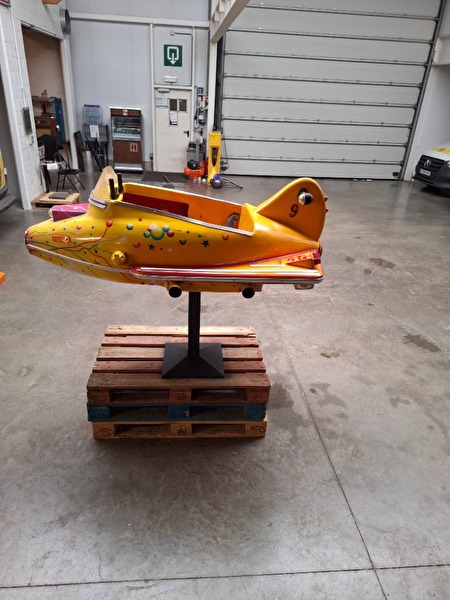 Prachtig en supercool kermisvliegtuig van kindermolen . Wie heeft daar niet ingezeten destijds ? Nostalgie ten top .Uiteraard met wat gebruikssporen, maar in zeer behoorlijke mooie staat. 190 x 100 cm bij benadering. Op staander ( H 75 cm) gemonteerd, dus klaar om direkt te plaatsen.