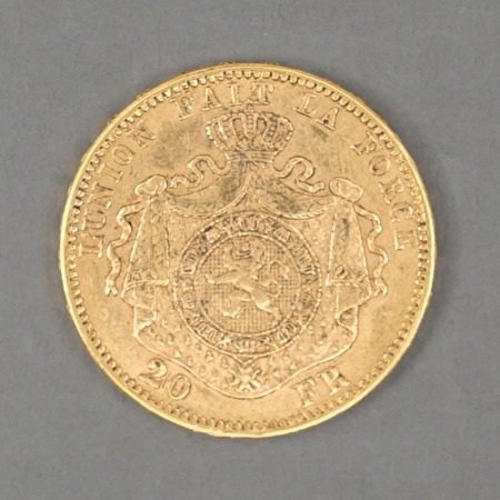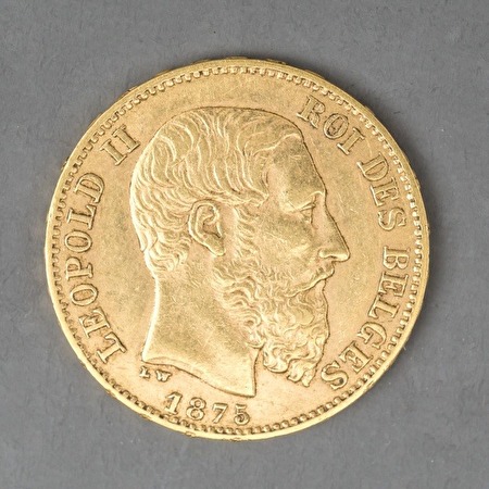 Gouden 20 Franc België 1875 gewicht 6,45 gram