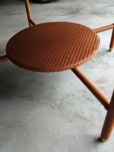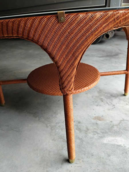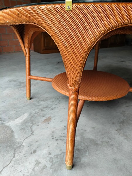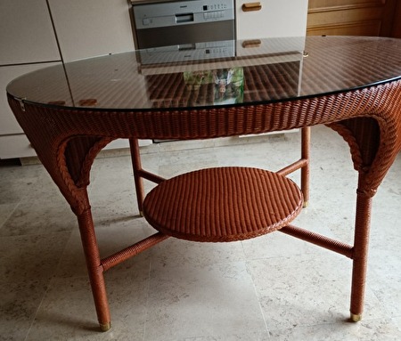 Diameter 1,20m , 75cm hoog , glasplaat op tafel.