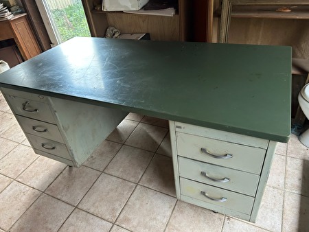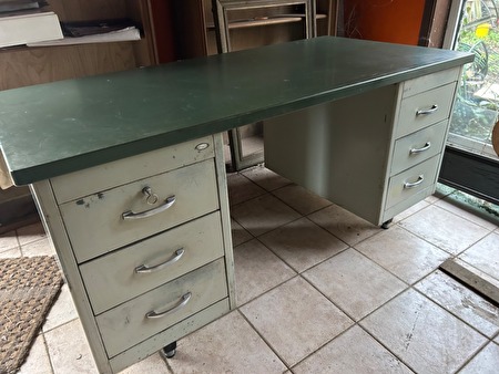 Vintage metalen bureau uit de jaren 50/60, met 6 schuiven, industrieel look