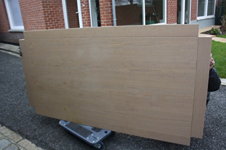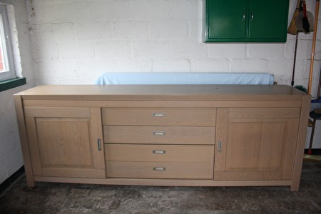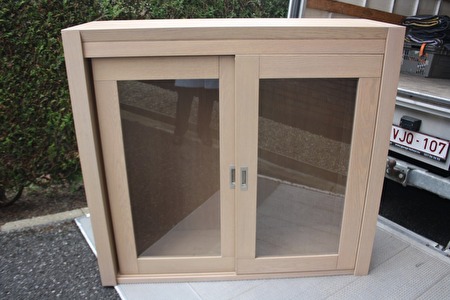 Vitrinekast in 2 delen: laag deel 130 op 50 op 90, hoog deel 130 op 120 op 43