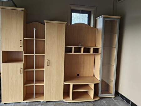 Mooie grenen open/gesloten wandkast met TV ruimte. Zo goed als nieuw, weg wegens afbraak veranda.