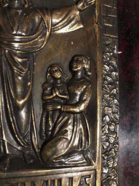 Het gezin bestaat uit een man (vader), een vrouw (moeder) en twee kinderen, één bij elke ouder. Dit symboliseert de bescherming en zegen van Christus over de familie.