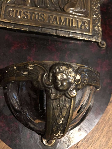 Dit soort voorwerpen werd traditioneel in huis geplaatst, meestal bij de voordeur, zodat gezinsleden en bezoekers zichzelf konden zegenen met wijwater bij het binnengaan of verlaten van de woning. Het diende als een uiting van geloof en devotie en als een oproep tot goddelijke bescherming voor het gezin en het huis.