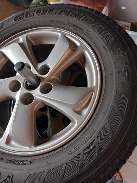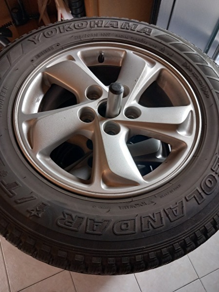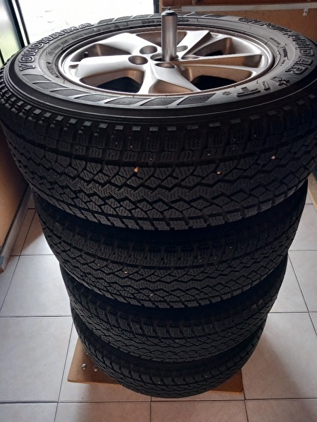 Winterbanden met velg hebben op een hyundia i35 gestaan