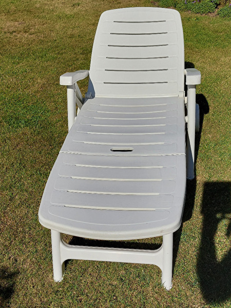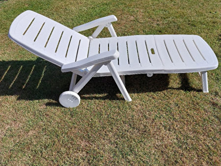 Zonneligstoel van het merk Flair met verstelbare rugleuning, gemakkelijk op te vouwen en te verplaatsen dankzij de wielen, ideaal voor ontspanning in de tuin, camping of strand.De zonneligstoel is gemaakt van duurzaam polypropyleen, het bed is geschikt voor buiten en weerbestendig, uv-bestendig, schimmelbestendig, smog en stof.