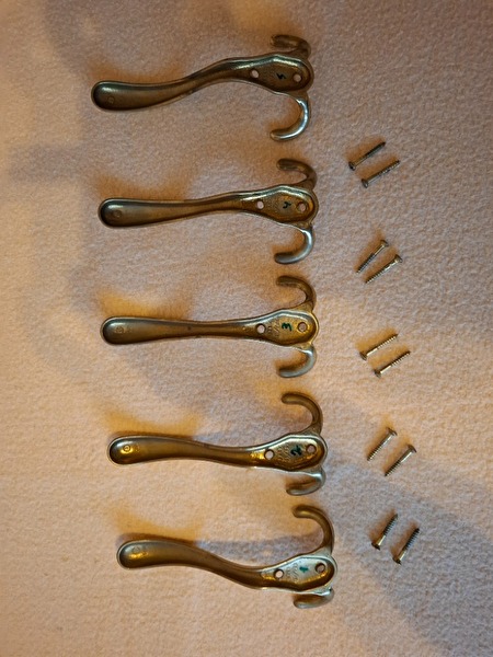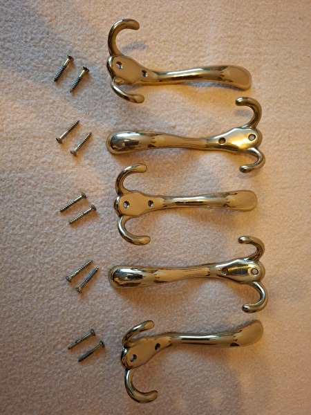 5 koperen kapstokken met koperen bevestigingsschroeven (uit inboedel