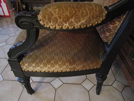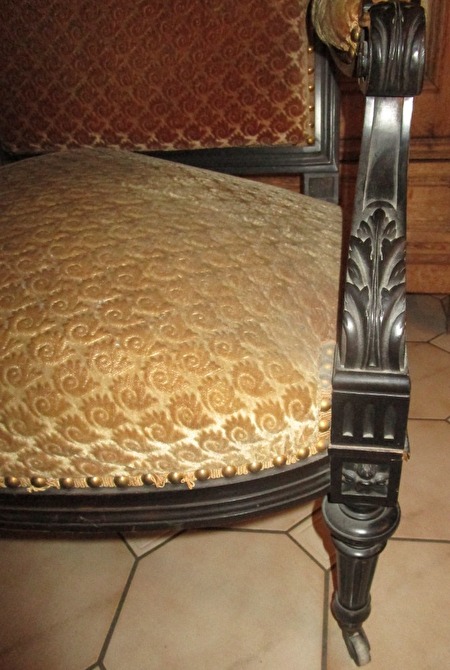 zetel uit jaren 1800 afkomstig uit kasteel. De zetel is een familiestuk dat via de overgrootmoeder is doorgeven.